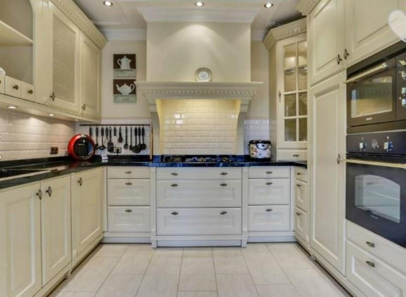 Luxury kitchen Country Style Tiled floor Underfloor met. Equipped with various upper and lower cabinets, " soft close" loaded, granite worktop with sink, microwave, oven, dishwasher, five-burner gas hob, extractor, large freezer and refrigerator.