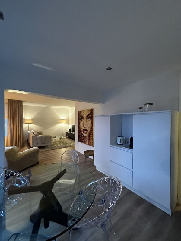 Living room approximately 30m2 with half-open new kitchen, lots of natural light and access door to balcony.