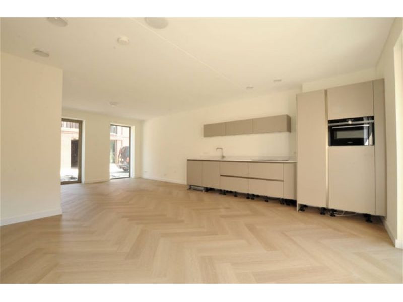 Spacious living room, equipped with a beautiful wear-resistant PVC floor, windows extending over the entire height of the room and an extensive open kitchen. This is equipped with a dishwasher, 4-burner induction hob with built-in extractor system, refrigerator and microwave-oven combination. All from the quality brand Siemens.