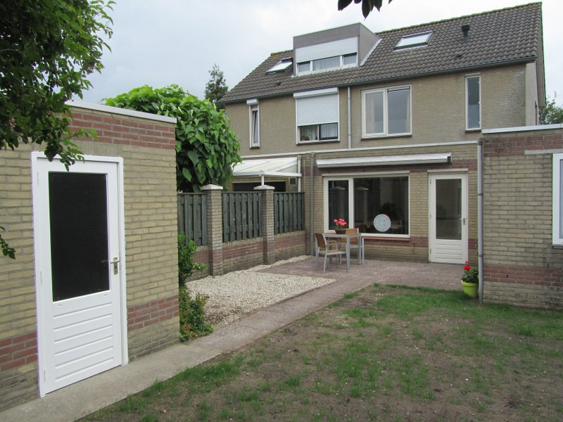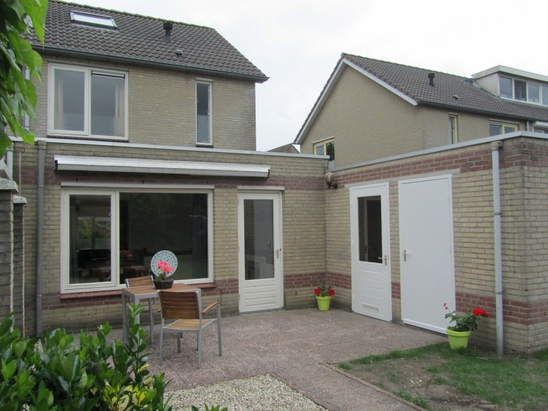 De grote achtertuin beschikt over een terras met zonneluifel, een aangebouwde berging en aan de achterzijde van de tuin een separate schuur. Garage Via de oprit aan de voorzijde van het huis rijdt u gemakkelijk de garage met roldeur in.