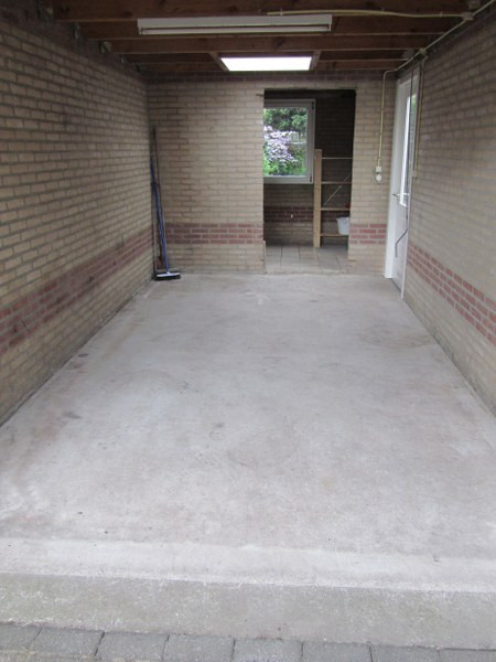 De garage is ook bereikbaar via de berging in de achtertuin.
