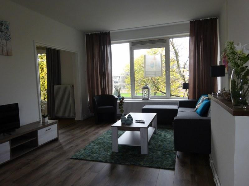 - De royale woonkamer is voorzien van een nette laminaatvloer en grote raampartijen waardoor het appartement zeer licht is.