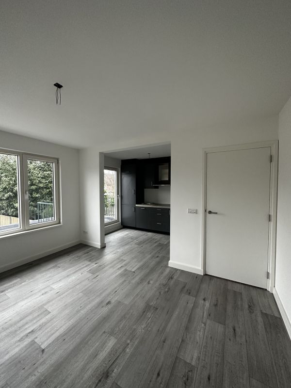 De woonkamer is gesitueerd aan de achterzijde van het appartement. Aansluitend bevindt zich de eetkamer met semi-open keuken.