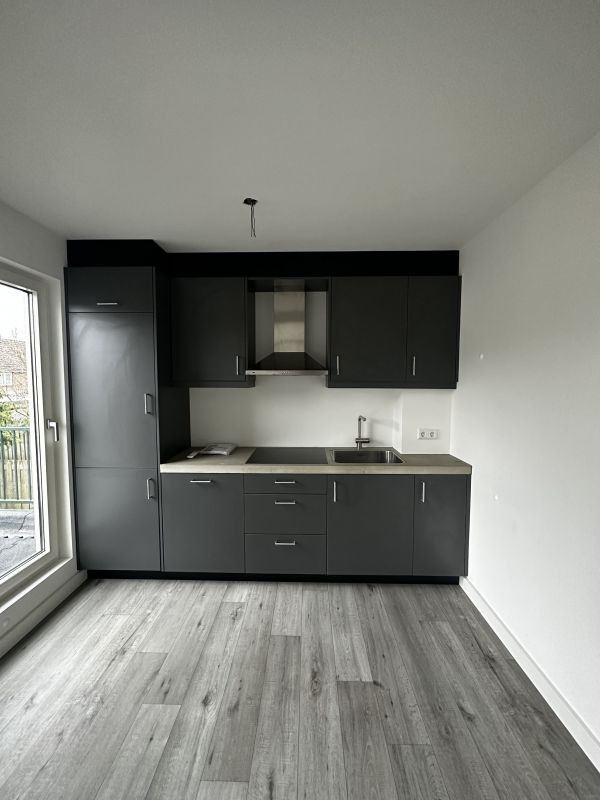 Luxe semi-open keuken v.v. koelkast, inductiekookplaat, afzuigkap, vaatwasmachine en veel kastruimte.